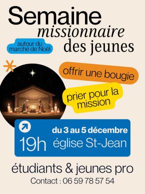 Semaine missionnaire des jeunes, étudiants et jeunes pro, autour du marché de Noël, offrir une bougie, prier pour la mission.